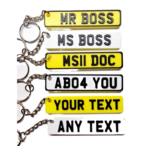 3D Personalised Keyring Keychain Name fob tag Handmade UK Car Reg.